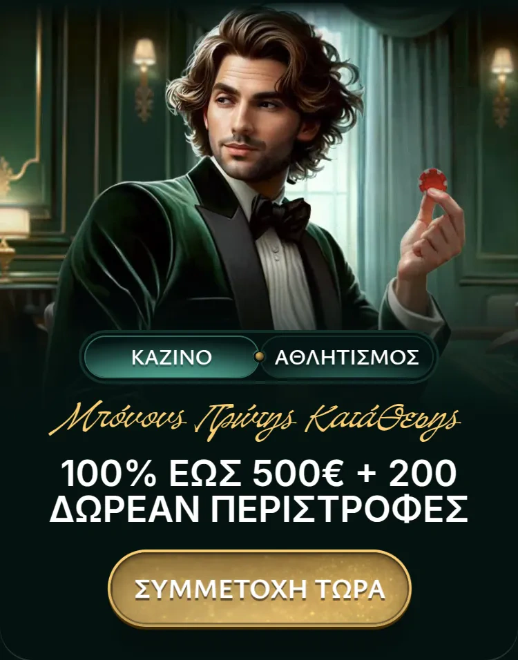 | Μπόνους Πρώτης Φοράς | 100% αντιστοίχιση έως €500 + 200 δωρεάν περιστροφές |